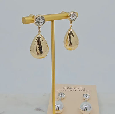 Round crystal stud with polished teardrop drop