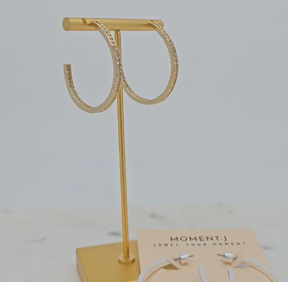 Add refined sparkle to your everyday look with these Crystal Pave Hoop Earrings from Moment J.