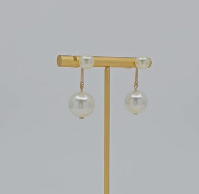 Make a statement with these elegant double pearl drop earrings set in gold-tone metal. Featuring a smaller pearl stud with a larger dangling pearl, these earrings perfectly blend classic charm and contemporary design. Lightweight and comfortable, they add a sophisticated touch to any outfit, whether casual or formal.