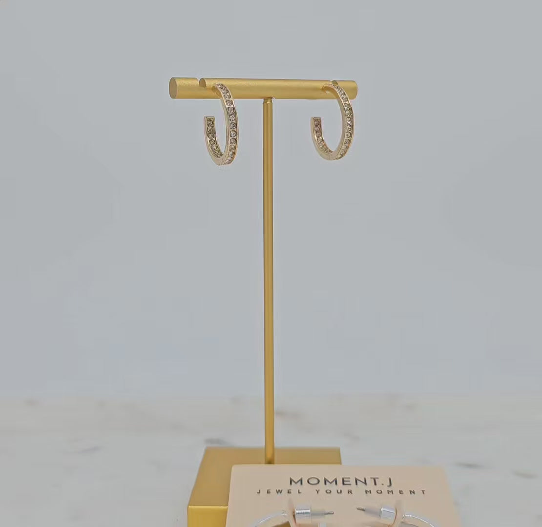 Add subtle sparkle to your everyday style with these pave crystal hoop earrings. Designed with a sleek half-hoop silhouette and channel-set crystals, they deliver modern shine that’s lightweight and versatile. Perfect for day-to-night wear, these earrings pair effortlessly with both casual and elevated looks.
