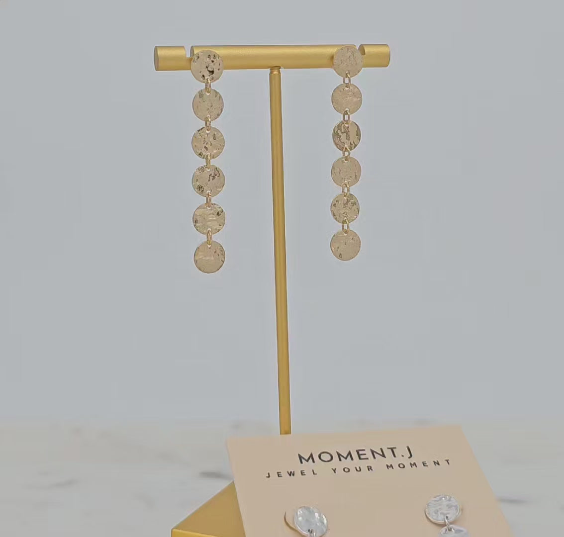 Add a playful shimmer to your look with these Textured Disc Linear Drop Earrings. Featuring cascading hammered disc elements in a lightweight, articulated design, these earrings bring a modern-boho flair that moves beautifully with every step. Choose from radiant gold-tone or chic silver-tone finishes for a touch of texture and style.