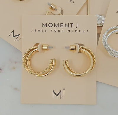 Elevate your jewelry collection with these Textured Hoop Earrings, designed with layered finishes that combine sleek polished bands and intricate rope details. Bold yet versatile, these hoops add depth and style to any look—perfect for everyday wear or as a statement accessory. Available in gold and silver finishes, they bring a modern twist to a timeless hoop design.